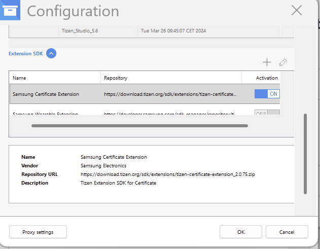 newbie, I’m currently creation a basic app. I’m trying to generate the SAMSUNG cert but I don’t have the tab proposed. I checked through several posts already and I have, I think, done the proper steps ( latest version of Tizen studio, enabled extension in the packages ) . What am I missing ( check screenshot attached ) ? Thanks!